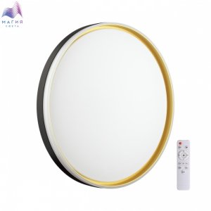 Светильник 7619/EL серии Сонекс Savi состоит из металлического основания и пластикового рассеивателя. Форма плафона: круглая, декорирована ободом из пластика черного и золотистого цветов. Степень защиты IP43 позволяет использовать светильник в определенных зонах влажных помещений. В комплект входит пульт ДУ, мощность 72Вт.