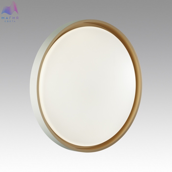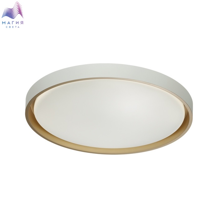 Светильник 7645/ELN серии Сонекс Kisil. Матеарил: металл/пластик. Форма: круг, декор - обод из пластика золотистого цвета с внутренней стороны и белого цвета с внешней стороны. Степень защиты IP43. Переключатель температуры цвета (ССT) на драйвере, с помощью которого осуществляется изменение цветовой температуры 3000/4000/6000К.