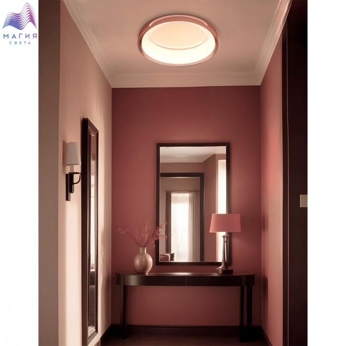 Светильник 7778/ELN серии Сонекс Portman. Материал: металл/пластмасса. Форма: круг. Декор - обод розового цвета. Степень защиты IP43. Переключатель температуры цвета (ССT) на драйвере, с помощью которого осуществляется изменение цветовой температуры 3000/4000/6000К.