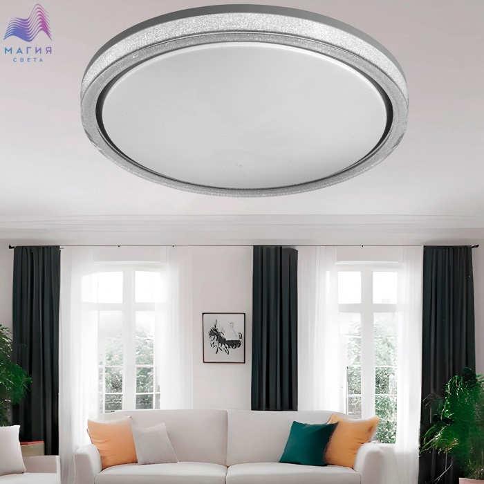Светильник 7781/ЕL серии Сонекс Kristy. Материал: металл/пластмасса. Форма: круг. Светильник декорирован прозрачным акриловым ободом, внутренняя часть которого покрыта акриловой крошкой, а также кантом золотистого цвета. Степень защиты IP43. Пульт ДУ в комплекте.
