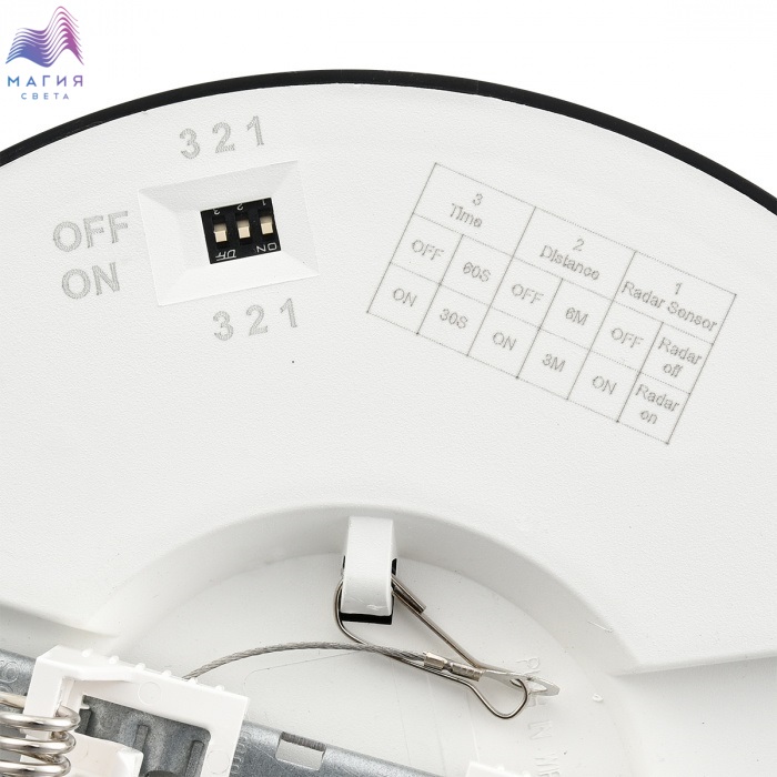 2. Встроенный регулируемый датчик движения с возможностью выбрать расстояние действия датчика + время отключения светильника после покидания зоны его действия.