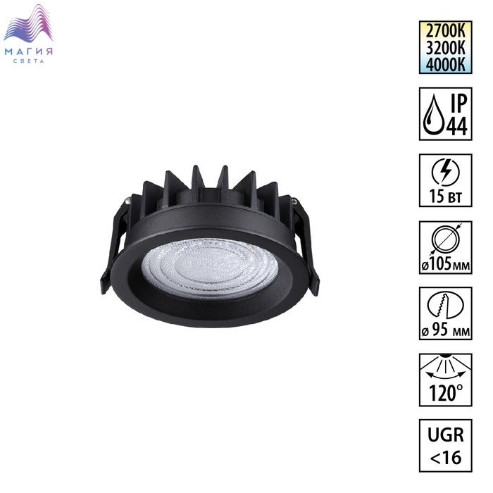 Встраиваемые светодиодные влагозащищенные (IP44) светильники Novotech FLUO. Можно выбрать цветовую температуру (2700/3200/4000 K). 2 цвета на выбор: черный или белый.